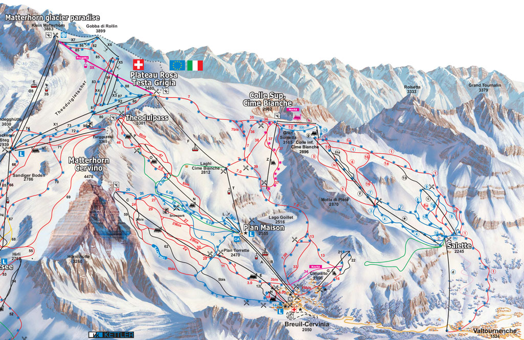 • Skipass: l’area Breuil-Cervinia/Valtournenche copre circa 150-156 km di piste.